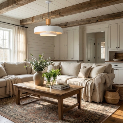 Velora Scandinavian Farmhouse Pendant with Glass Shade Modern Plug-In Design